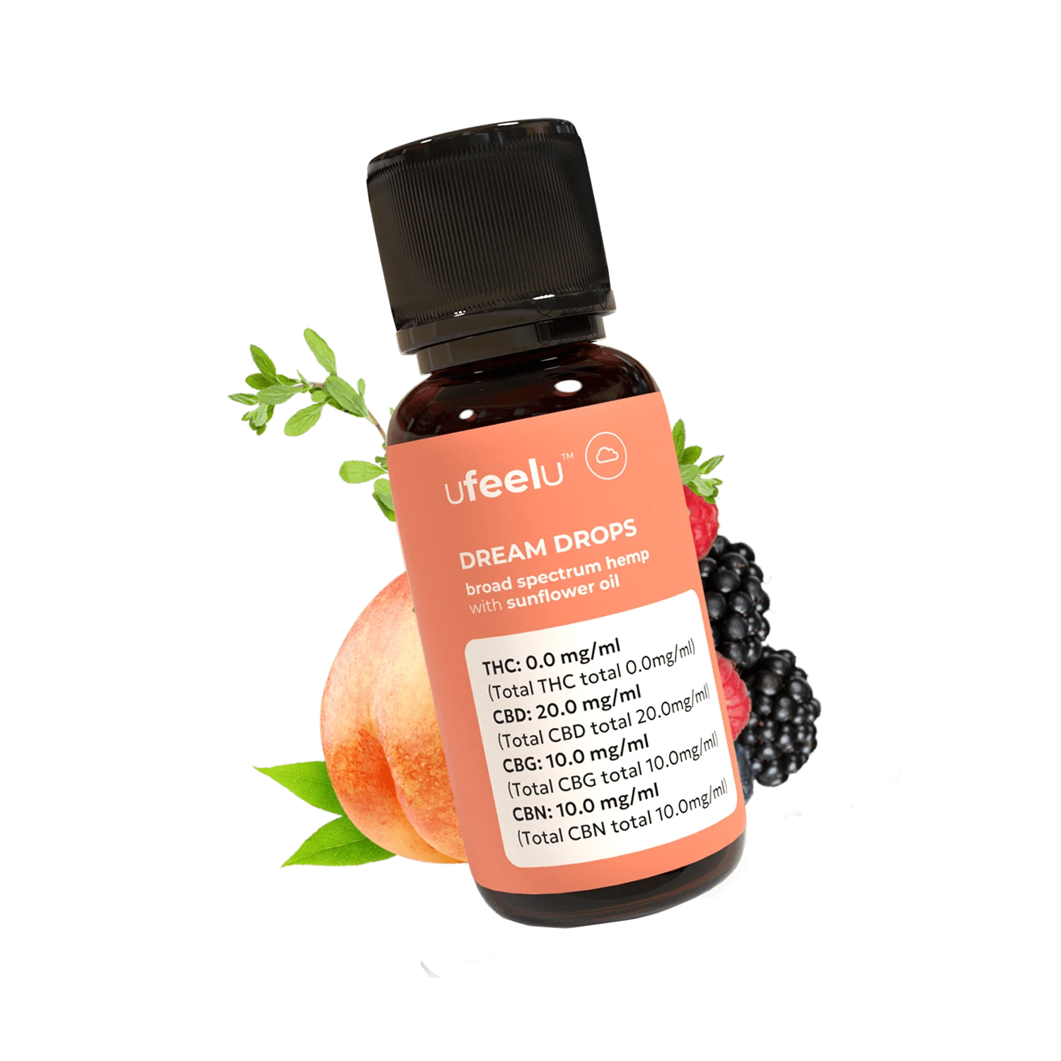 A broad spectrum non-intoxicating formulation featuring 600mg CBD, 300mg CBG, 300mg CBN, sunflower oil and ufeelu's proprietary dream blend of 32 botanical terpenes.